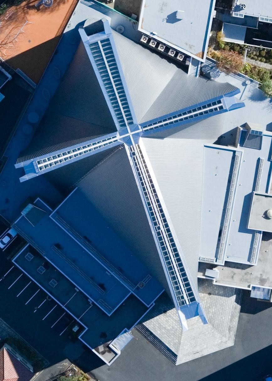 從地面觀察,或許難以辨認這是一座教堂,但從空中俯瞰,建築呈現出十字架的形狀,壯觀又吸睛,教堂內還設有日本最大規模的管風琴,並且在非彌撒時間內(9:00~17:00),可供遊客免費參觀。